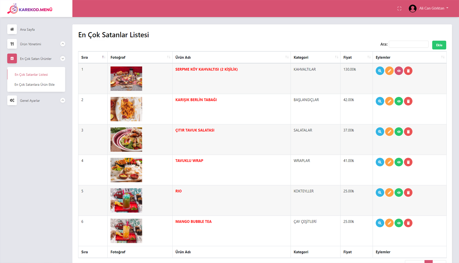 Hem qr menünüzü yönetebilmek için hem de müşterilerinizin ürünlerinizi rahatça ulaşabilmesi için arayüzlerimizi sürekli geliştiriyoruz.